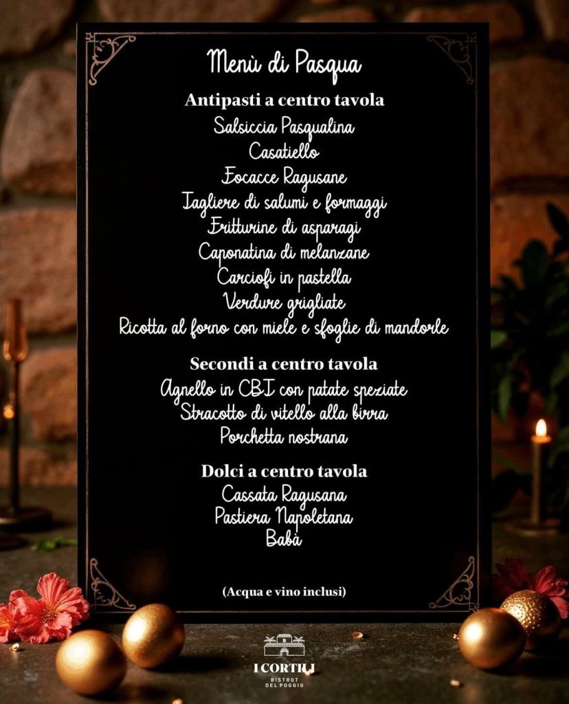 - PRANZO DI PASQUA (vedi menù in fondo alla pagina)